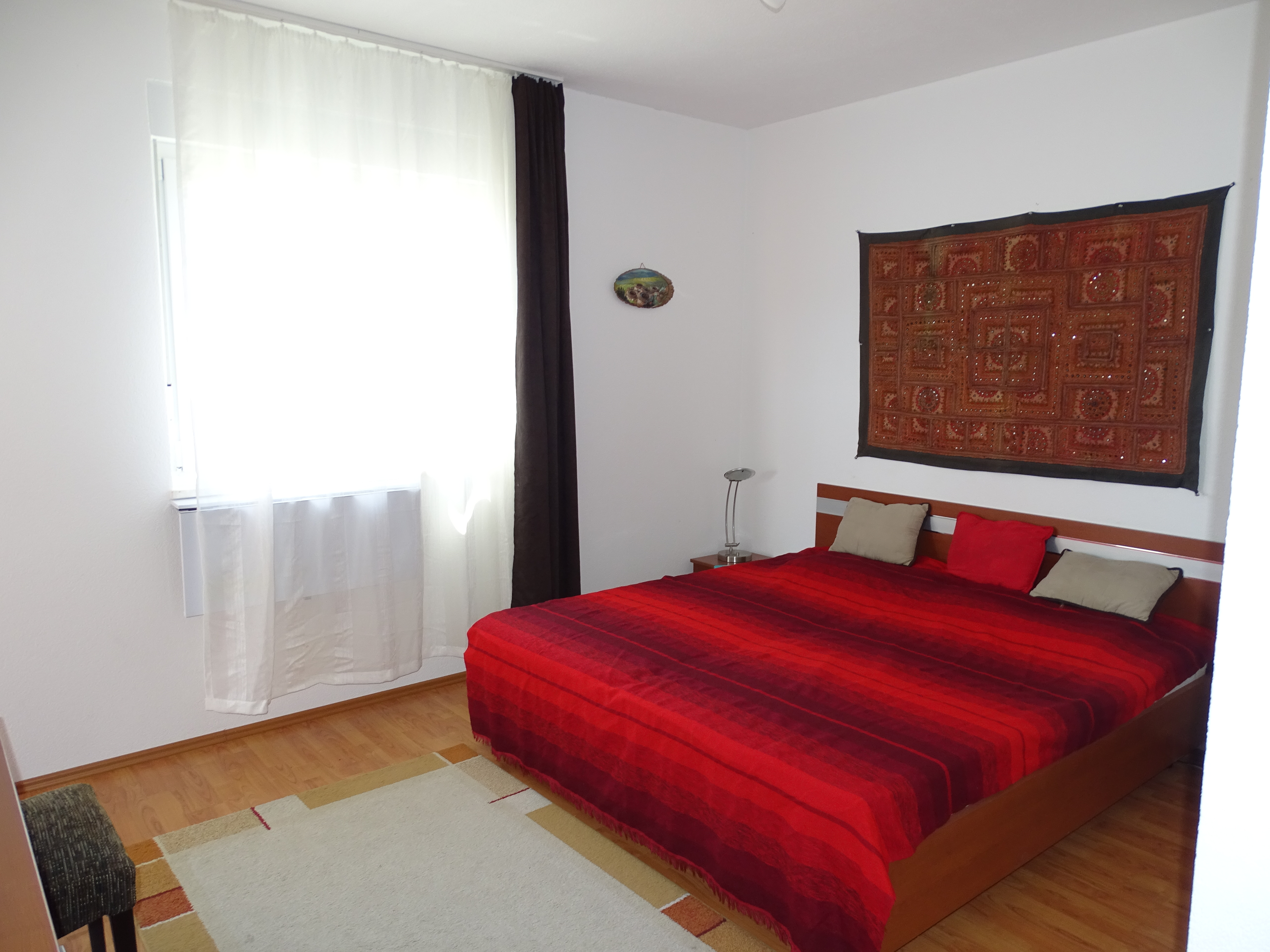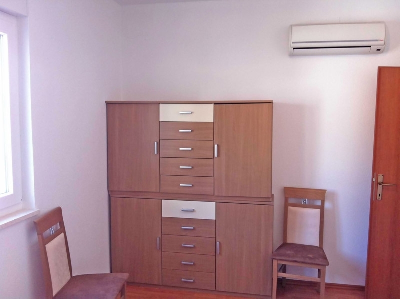 Az erkélyre nyíló hálószoba franciaágyas (ebből nyilik a zuhanyzós kisebb fürdőszoba), a másik szobában két dívány, a legkisebb szobában pedig felnőtt méretű emeletes ágy található.