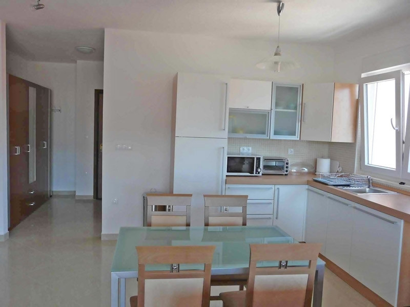 Alapterülete 96 négyzetméter, második emeleti két és fél szobás, két fürdőszobával, hatalmas amerikai konyhás nappalival és tágas, tengerre tekintő, kerti bútorral ellátott balkonnal rendelkezik.
