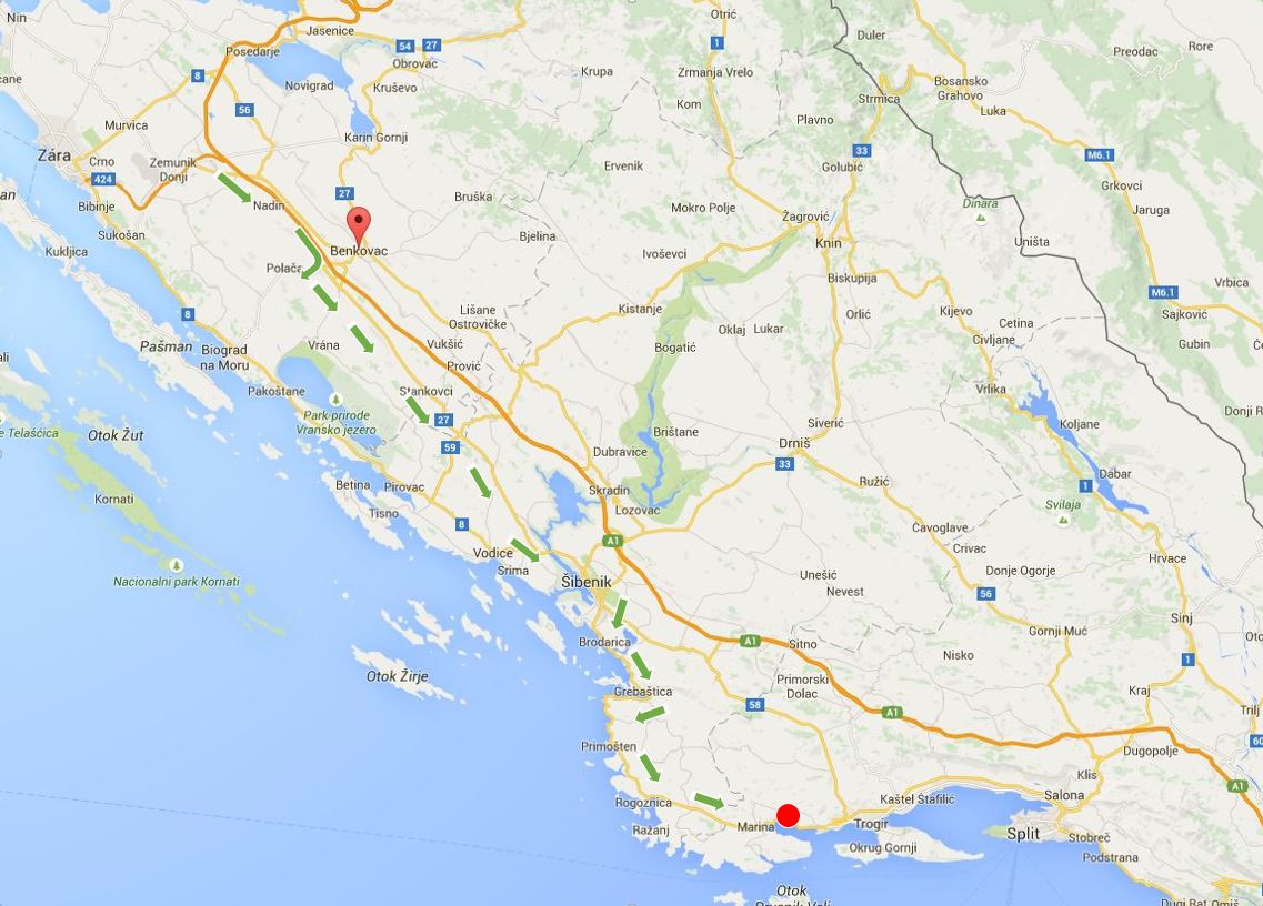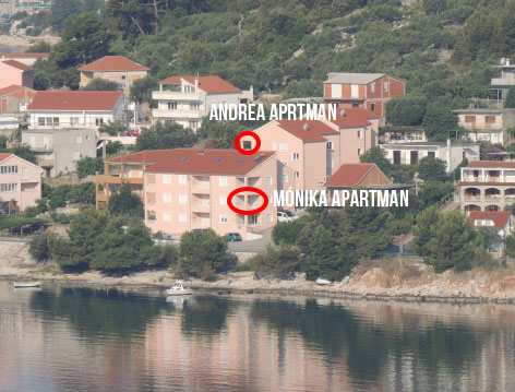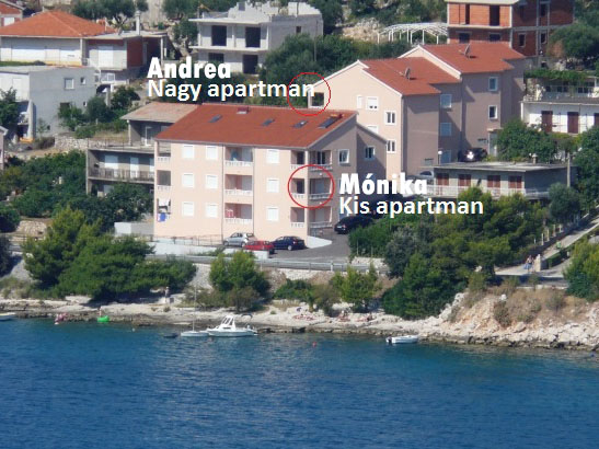 Az alábbi, Poljicát, Trogirt, Omist és Splitet bemutató video első részében többször feltünik az a tengerparton álló rózsaszin nagyobb épület, amelyben a két apartman található